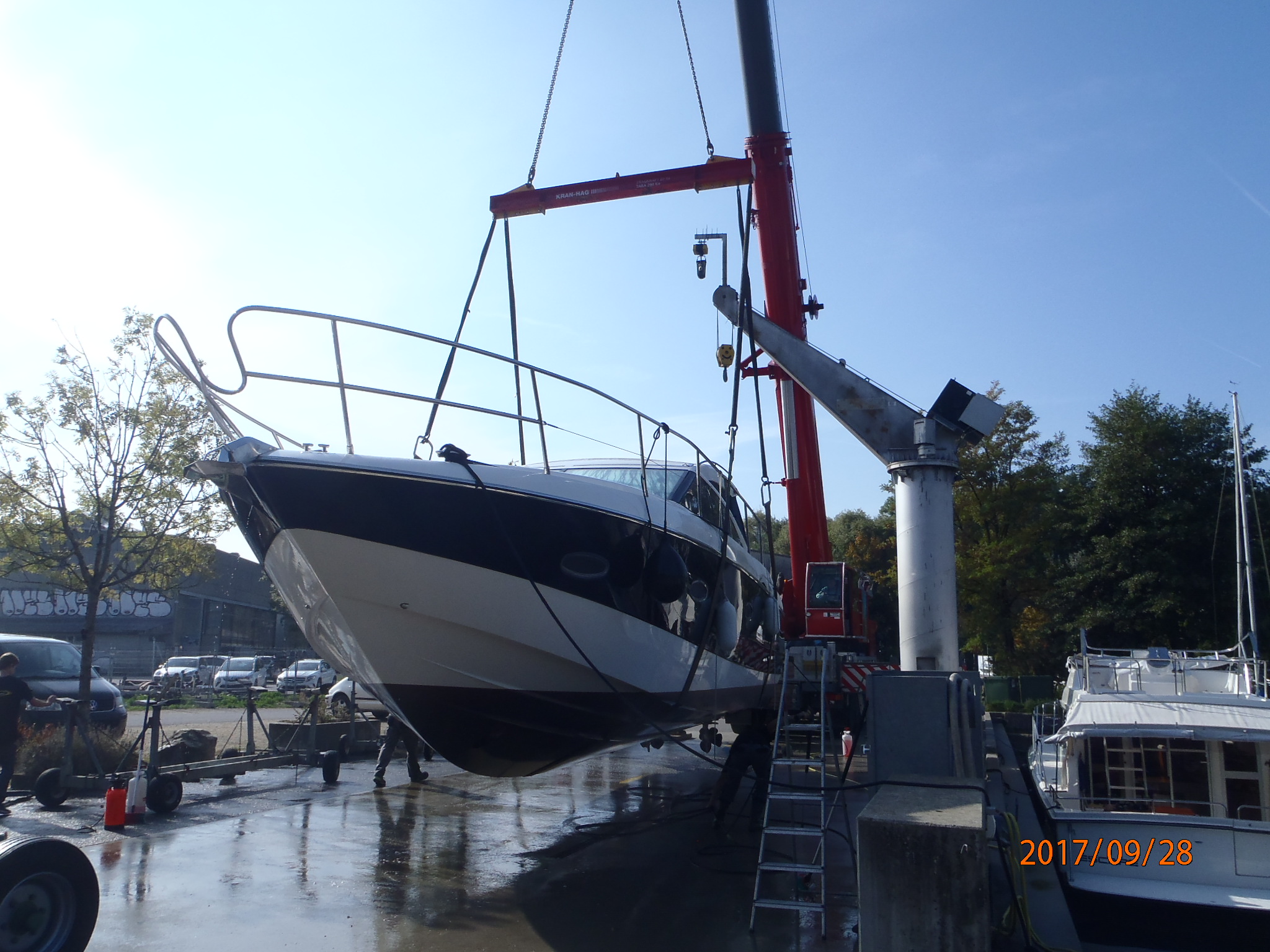 Ein- und Auswassern am Kran im Barkenhafen Nidau
